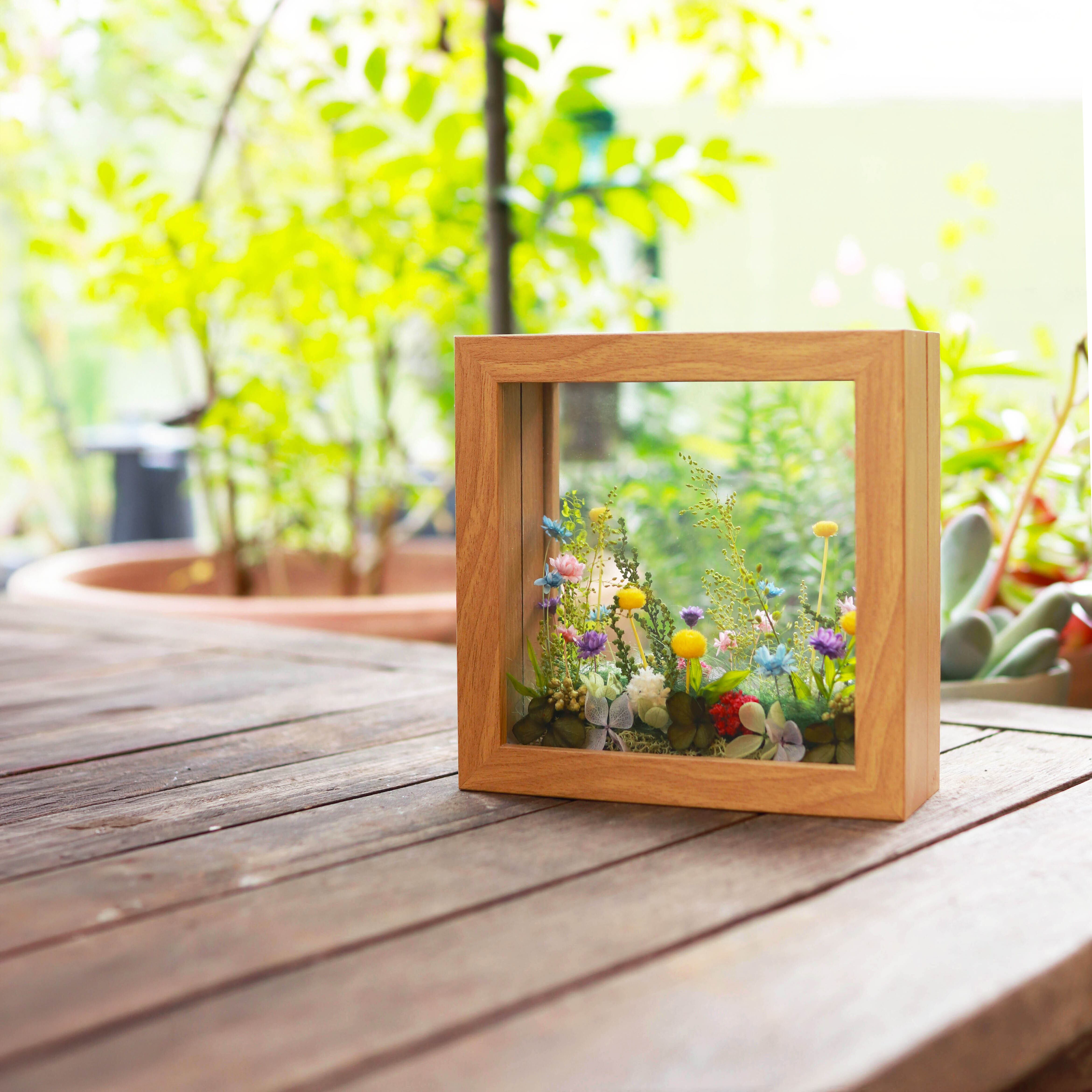 まるで美しい風景を切り取ったかのようなフレームアレンジメントです